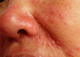 1、影响患者外观形象。酒糟鼻红斑、丘疹、脓疱等皮肤损害,在很大程度上影响患者外观形象;