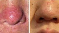 3.物理和手术治疗:毛细血管扩张者激光治疗效果最好。鼻赘期也可手术切割治疗,以达到美容效果。