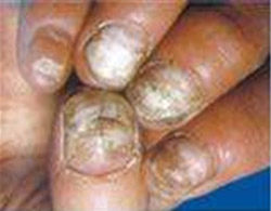 初诊情况:脚气引起的指甲趾甲感染
