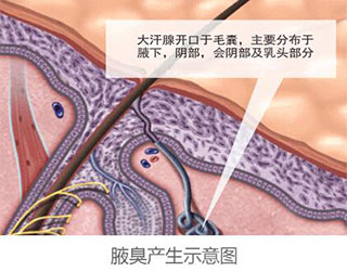 1.大汗腺异常发达。汗腺均具有调节人体体温、参与人体正常生理活动的功能,但是大汗腺异常发达容易产生腋臭。